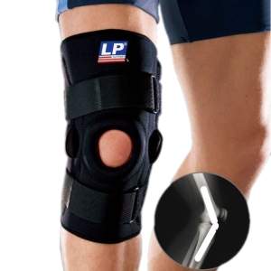 Recommended for post-operative ligament reapirs. Horsehoe pad stabilize patella and provides extra protective cushioning. Open relieves pressure on patella. Two metal hinges for maximum medial and lateral support.