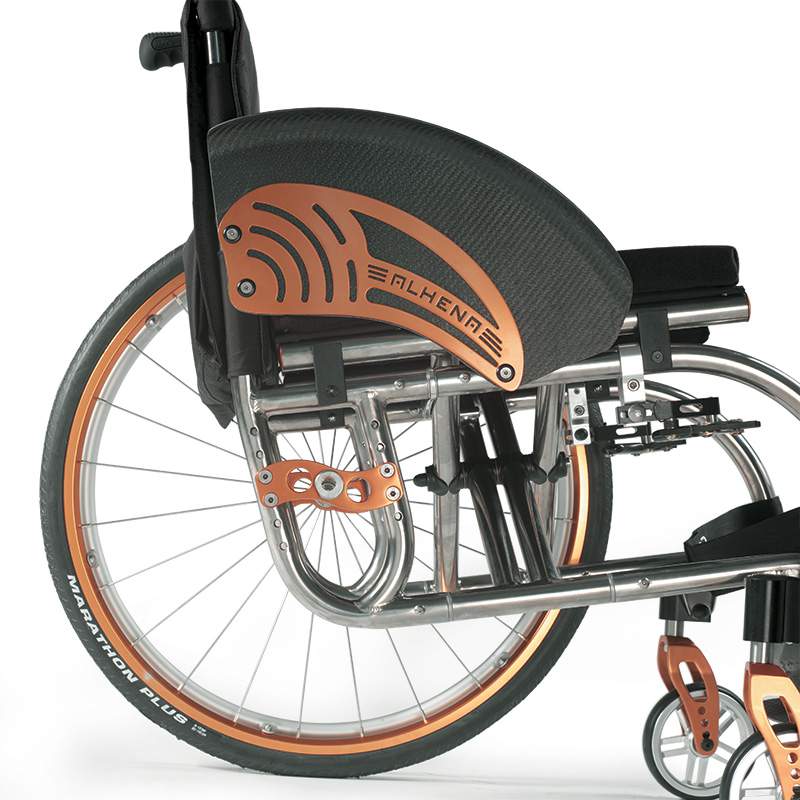 Ultra lightweight rigid frame wheelchair in titanium.